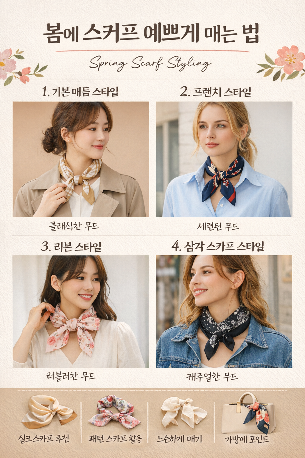 봄에 스커프 예쁘게 매는 법 | 스타일 살리는 스카프 코디